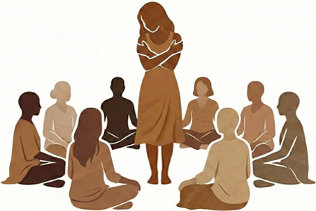 Un refugio grupal: No vas a estar solx. Facilitaremos que tu grupo se transforme gradualmente en una pequeña comunidad de apoyo basada en la compasión; un espacio seguro para aceptar y ser aceptadx mientras nos acompañamos en lo que cada unx elija compartir.